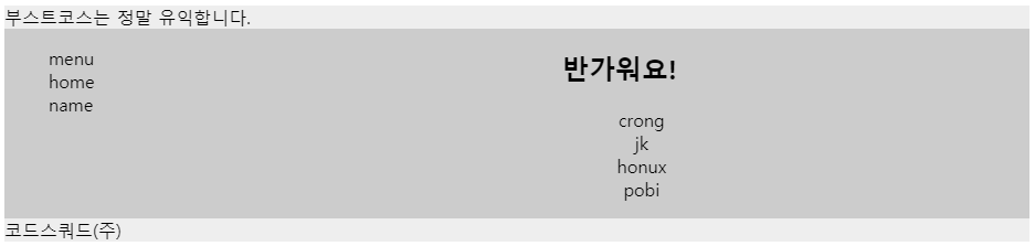 width를 %(가변폭) 으로 주었기 때문에 웹 사이트의 사이즈를 넓히건 줄이건 배치는 유지가 되는 걸 확인할 수 있다.