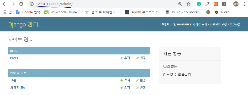User.objects.all() # 모든 유저목록 확인 2044smile