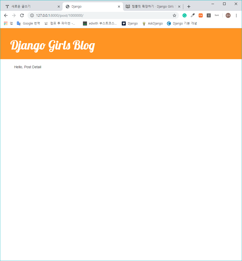 url 에 대한 설정을 다 끝났다. 이제 post_detail.html 에 입력된 pk에 맞는 게시글(post)을 출력해보자.
