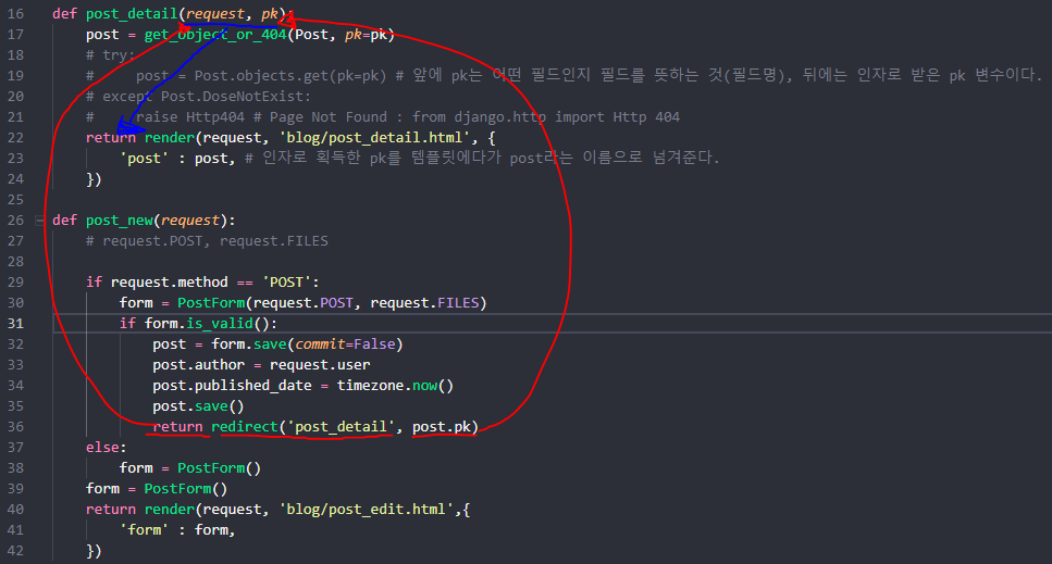 끝으로, 새 블로그 글을 작성한 다음에 post_detail 페이지로 이동하게 끔 만들어보자.