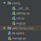 - __init__.py : 파이썬 2.x대 버전과의 호환을 위해 만들어진 비어있는 파일이다. 3.x 대에서는 불필요하지만 계속 생성된다. 지워져도 프로젝트를 진행하는데 지장이 없다.