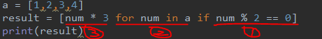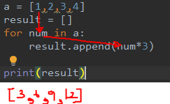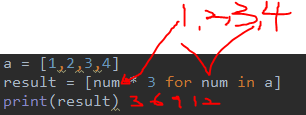 위 예제는 a 리스트의 각 항목에 3을 곱한 결과를 result 리스트에 담는 예제이다.