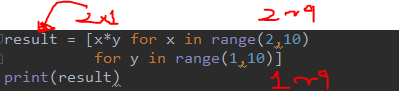 >>> result = [x*y for x in range(2,10)