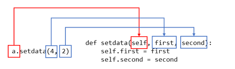 기존에 사용하던 setdata 메서드가 필요가 없다. init 메서드도 다른 메서드와 마찬가지로 첫 번째 매개변수 self 에