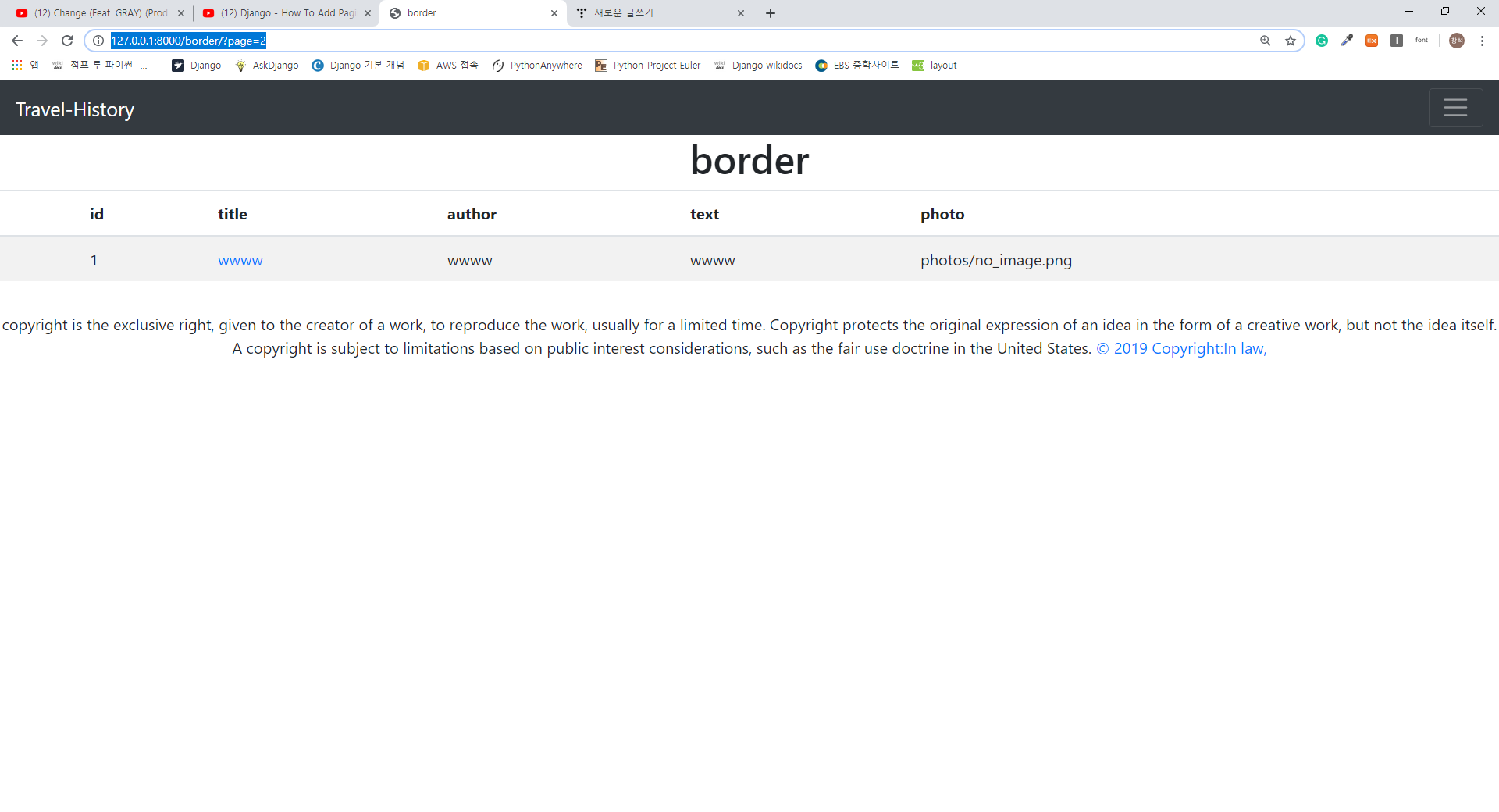 http://127.0.0.1:8000/border/?page=2 로 입력해주면 11번 게시물이 보이는 걸 확인할 수 있다.