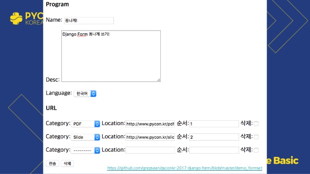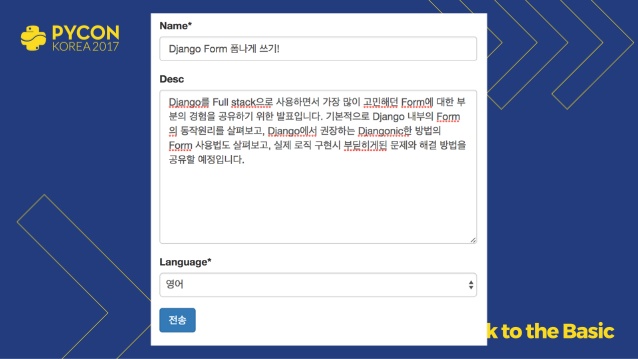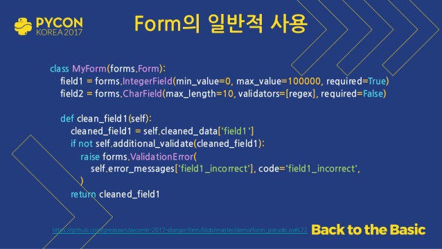 https://www.pycon.kr/2017/program/159 Django 개발의 절반은 아마 Form 아닐까요? 저도 현업에서 Django를 Full stack으로 사용하면서 가장 많이 고민해던 Form에 대한 경험을 공유하기위해 발표를 준비했습니다. 25분이라는 짧은 시간에 …