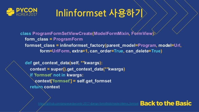 formset안에 담긴 정보는 context['formset'] = self.get_formset 으로 전달된다.