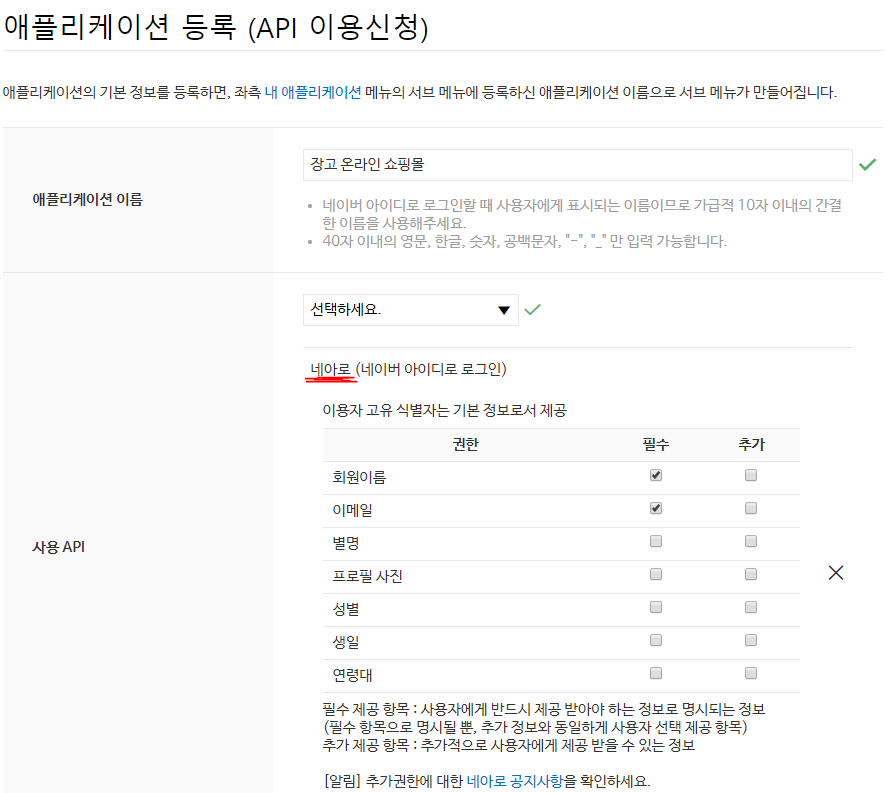 네이버 같은 소셜 로그인 기능을 사용하려면 해당 소셜 사이트에서 API 키를 발급 받아야 한다.