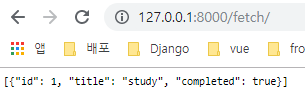 fetch/ 로 접근하면 미리 관리자 페이지를 통해 만들어둔 할 일 목록이 나타난다.
