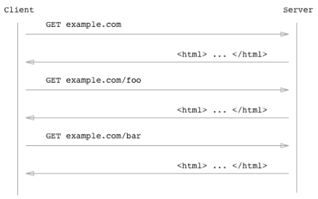 서버 측에서 렌더링을 할 경우, 새로운 웹 페이지를 보고 싶을 때 마다 다음과 같이 새로운 페이지 요청이 필요하다.