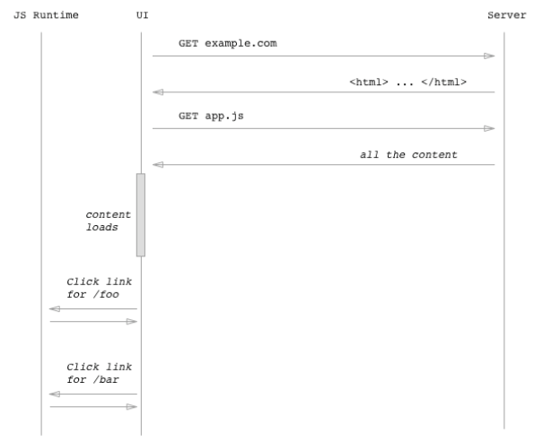 * 클라이언트 측 렌더링을 사용하면 초기 페이지로드가 느려진다. 네트워크를 통한 통신이 느리므로 사용자에게 콘텐츠를 표시하기 전에 서버를 두 번 왕복해야 한다. 그러나 그 후에는 모든 페이지로드가 엄청나게 빠르다.