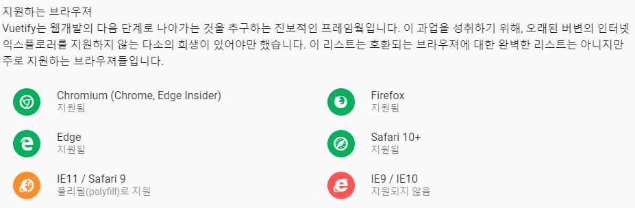 지원하는 브라우저에는 예전 버전의 익스플로러는 지원하지 않는다.