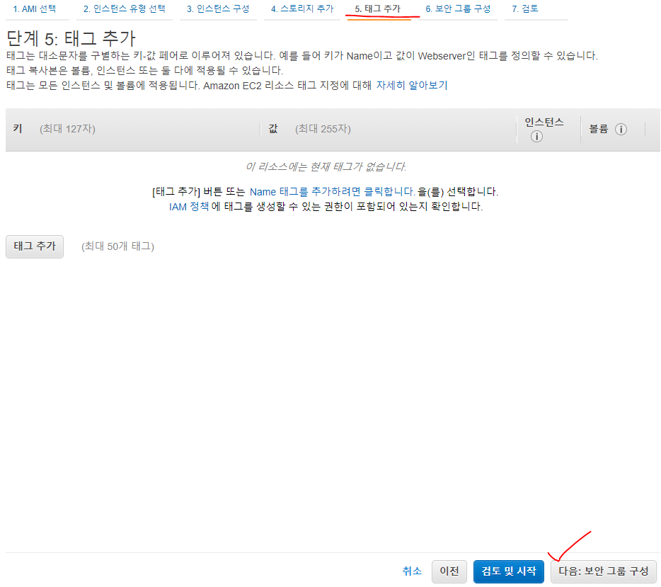 EC2 인스턴스 내 메타데이터를 관리하기 위한 고유 명칭을 지정하는 부분이다. 임의의 값을 지정할 수 있으며, 지정하지 않아도 EC2 인스턴스 생성에 문제는 없다.