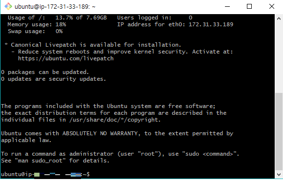 ssh -i mypollss.pem ubuntu@퍼블릭 DNS 주소