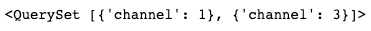 Q(creted_at__day=day) & Q(status=2)).values('channel').order_by('channel').distinct()