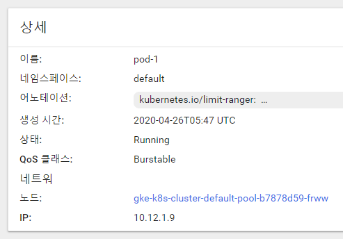 Service 없이 이 Pod 에 접근 할 수 있는 IP이고 쿠버네티스 클러스터 내에서만 호출 할 수 있다.