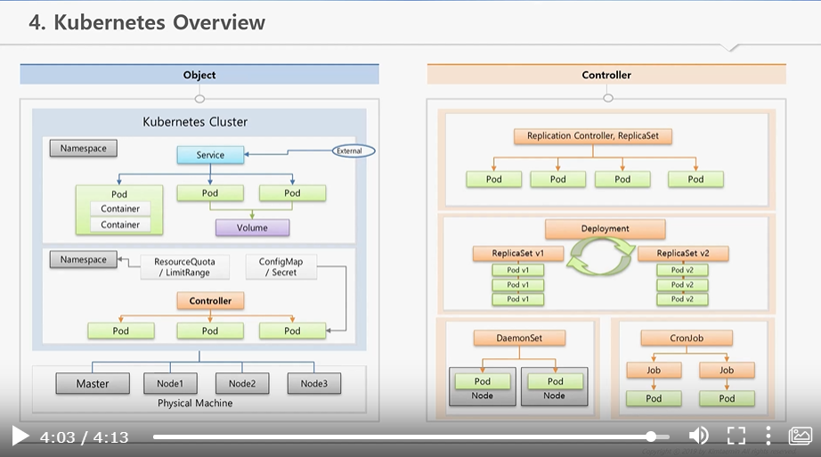 마스터는 쿠버네티스의 전반적인 기능들을 컨트롤하는 것
