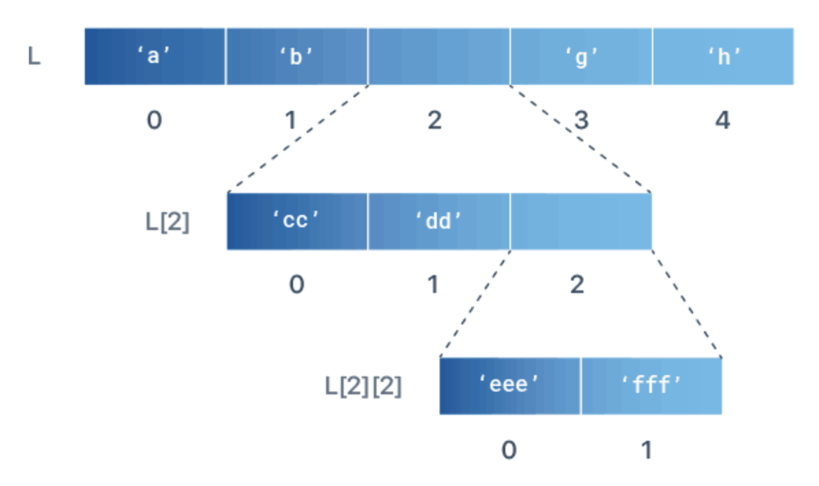리스트 안에 또 리스트가 있는 형태를 Nested List 라고 합니다.