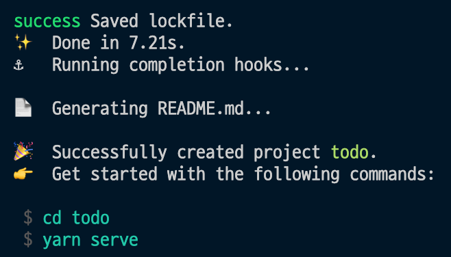cd todo로 생성 된 폴더 이동 후