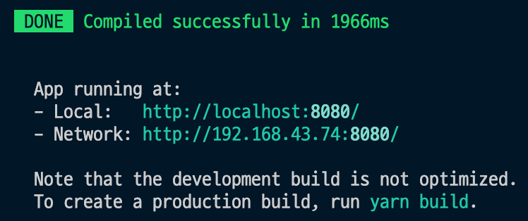 yarn serve 혹은 npm run serve 로 서버를 실행시킬 수 있습니다.