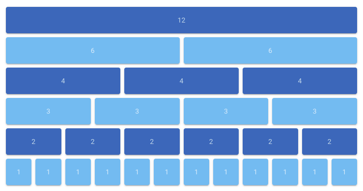 Vuetify 에서는 12 구획으로 나누어진 그리드 시스템을 지원합니다. 즉 한 row(열)은 12개의 column으로 구성된다고 보면 됩니다.