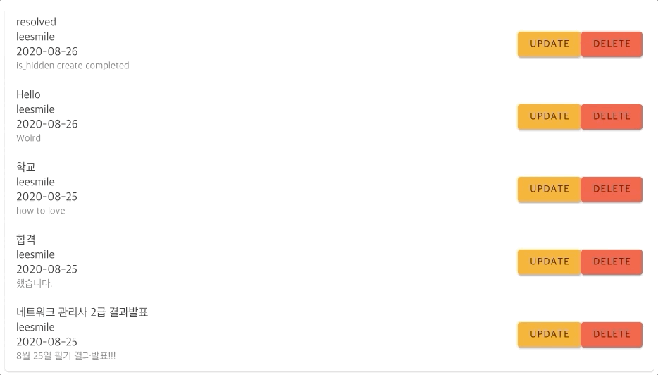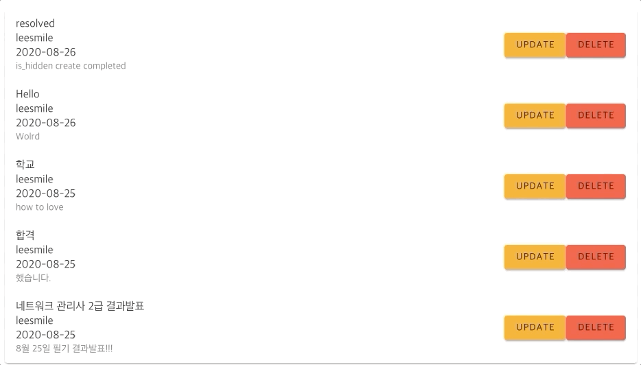 TodoList 목록들에 수정할 수 있게 Update 버튼들이 위치해있습니다.