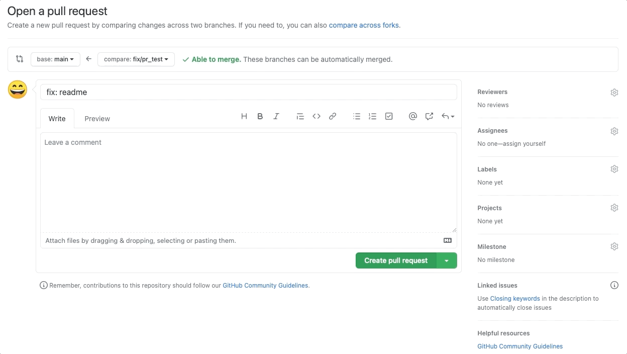 2. Merge pull request(버튼 활성화)