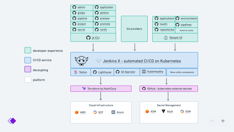 위와 같은 문제들로 인하여 Jenkins에서는 쿠버네티스 환경에 맞춘 새로운 CI/CD 툴인 Jenkins X를 개발하게 되었습니다.