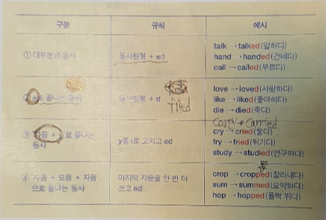 1. 대부분의 동사들을 -ed를 붙여서 과거형으로 바꿀 수 있다.
