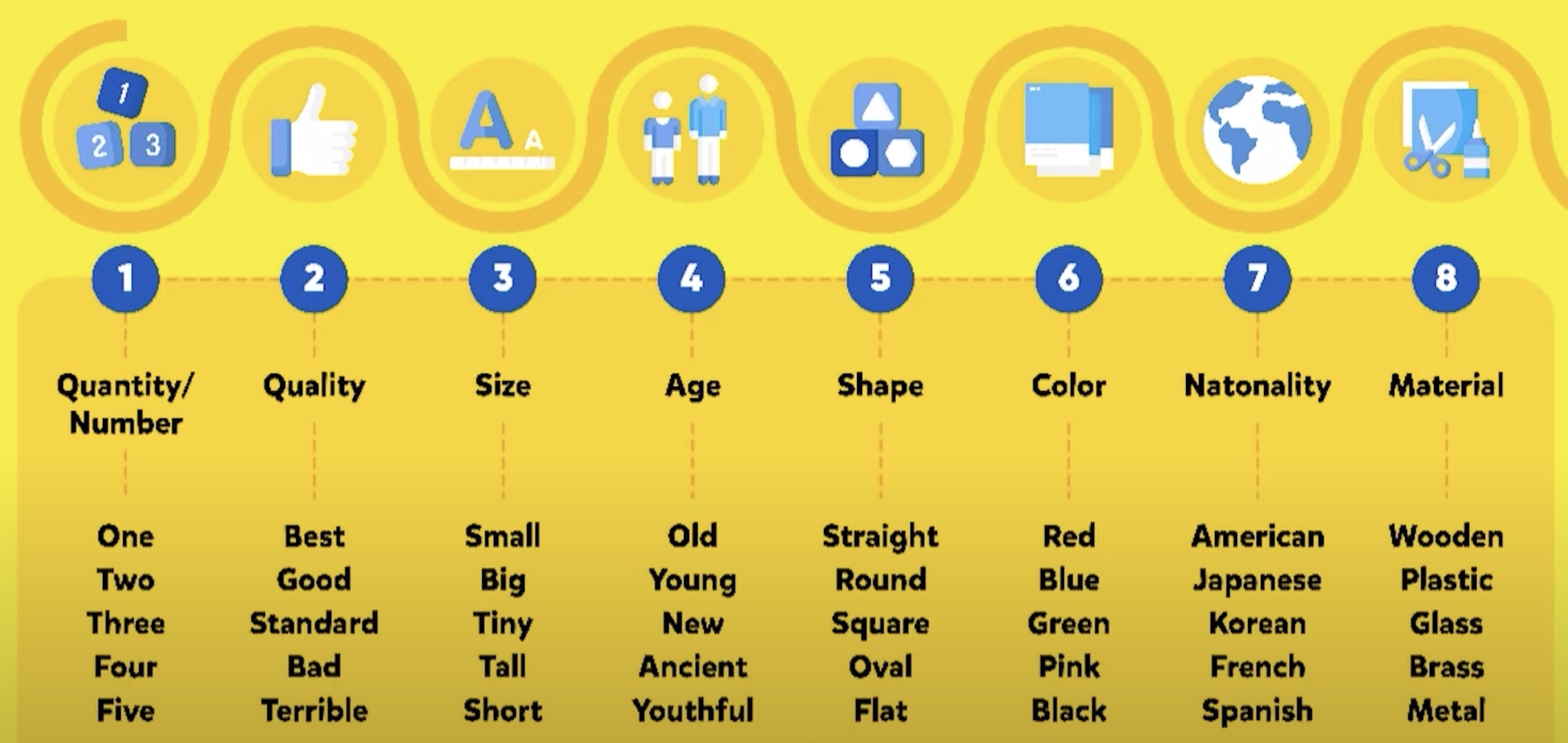 많은 형용사를 사용할 때는, 특정 순서대로 쓰는 것이 중요