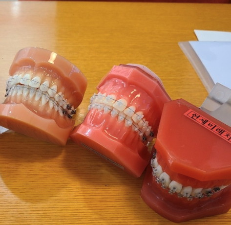 세라믹 브라켓은 치아와 붙일 때 너무 잘 돼서 나중에 브라켓을 띠고 나면 브라켓 자국이 남는다고 하네요.