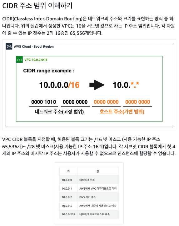 아래 사진은 CIDR 주소 범위를 이해하기 입니다.