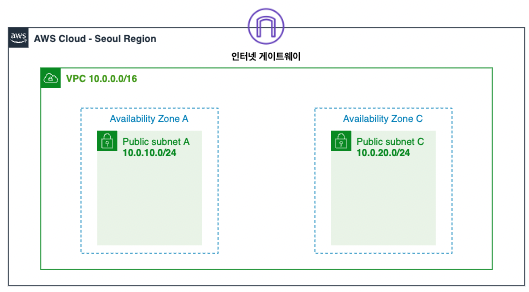 인터넷 게이트웨이(igw) 가 설정 된 아키텍쳐 구성입니다.