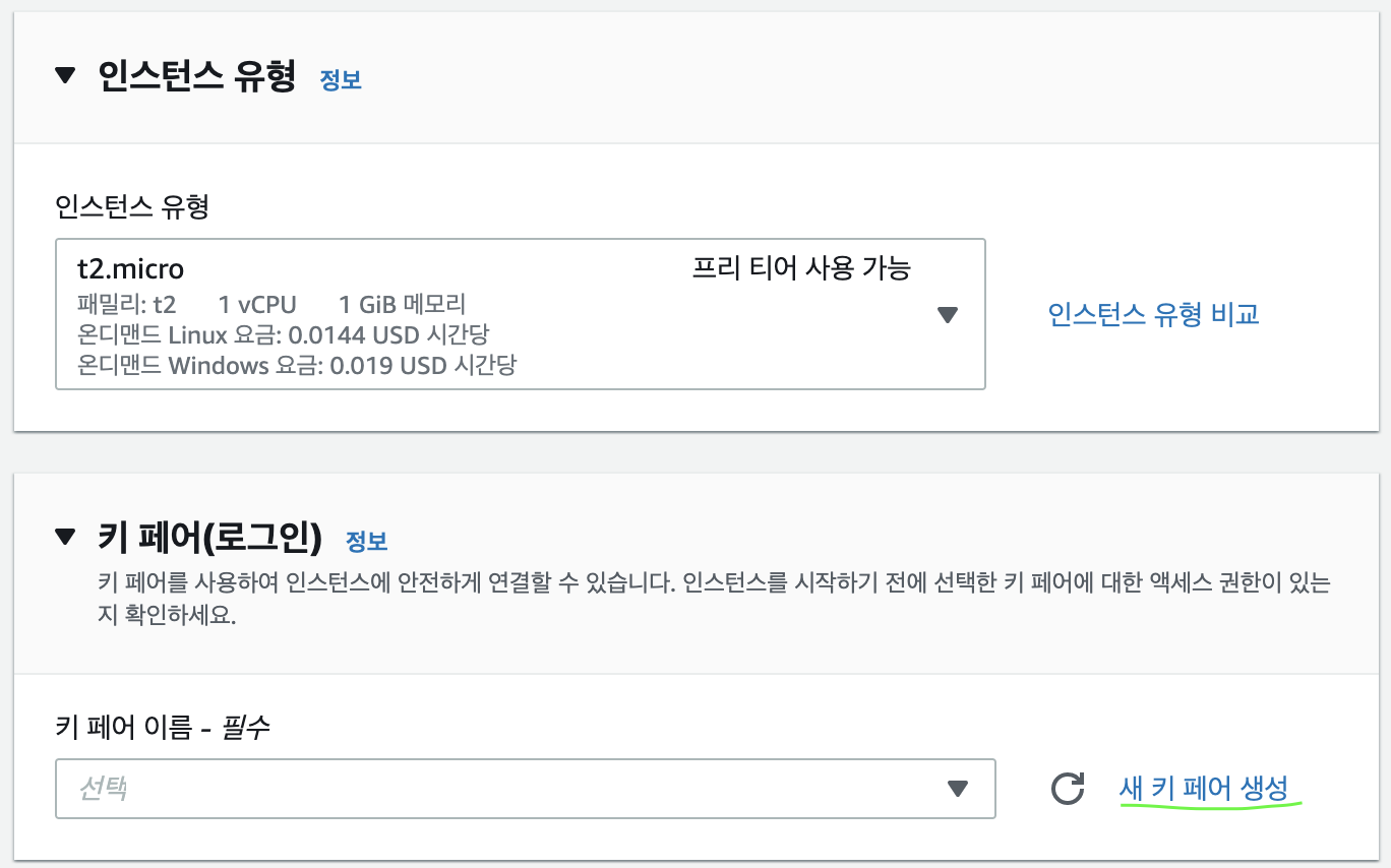 인스턴스 유형 또한 기본으로 설정하겠습니다.