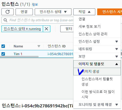 전에 만들어놓았던 EC2 를 클릭합니다.