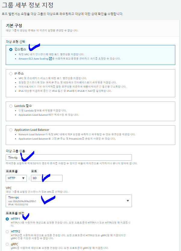 대상 그룹 = target groupd 이므로 대상 그룹 이름을 tg로 만들겠습니다.