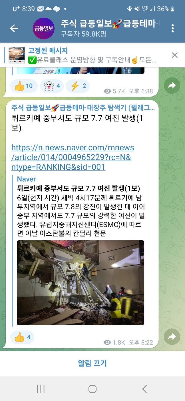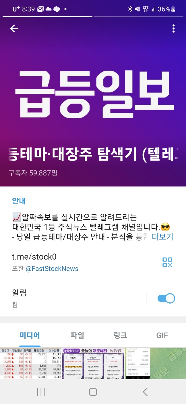 아래 사진에서 보이는 주식 급등일보...가 채널입니다.