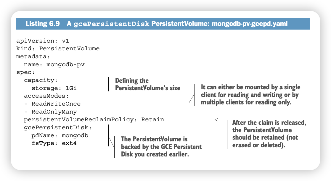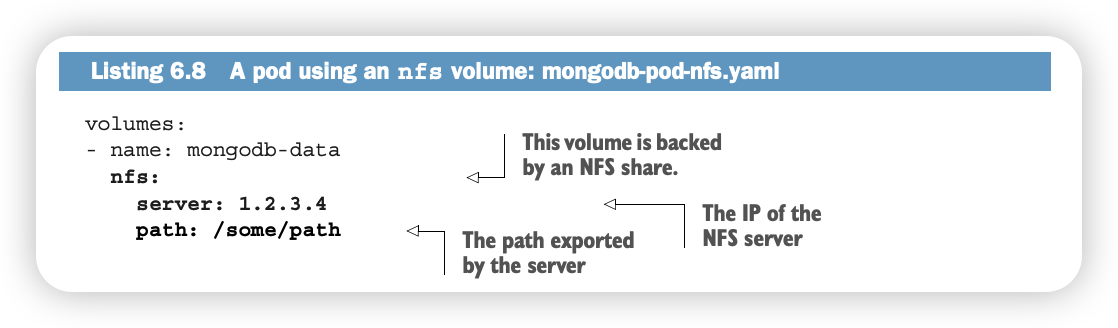 그런 다음 퍼시스턴트볼륨클레임은 파드 내부의 볼륨 중 하나로 사용될 수 있다.