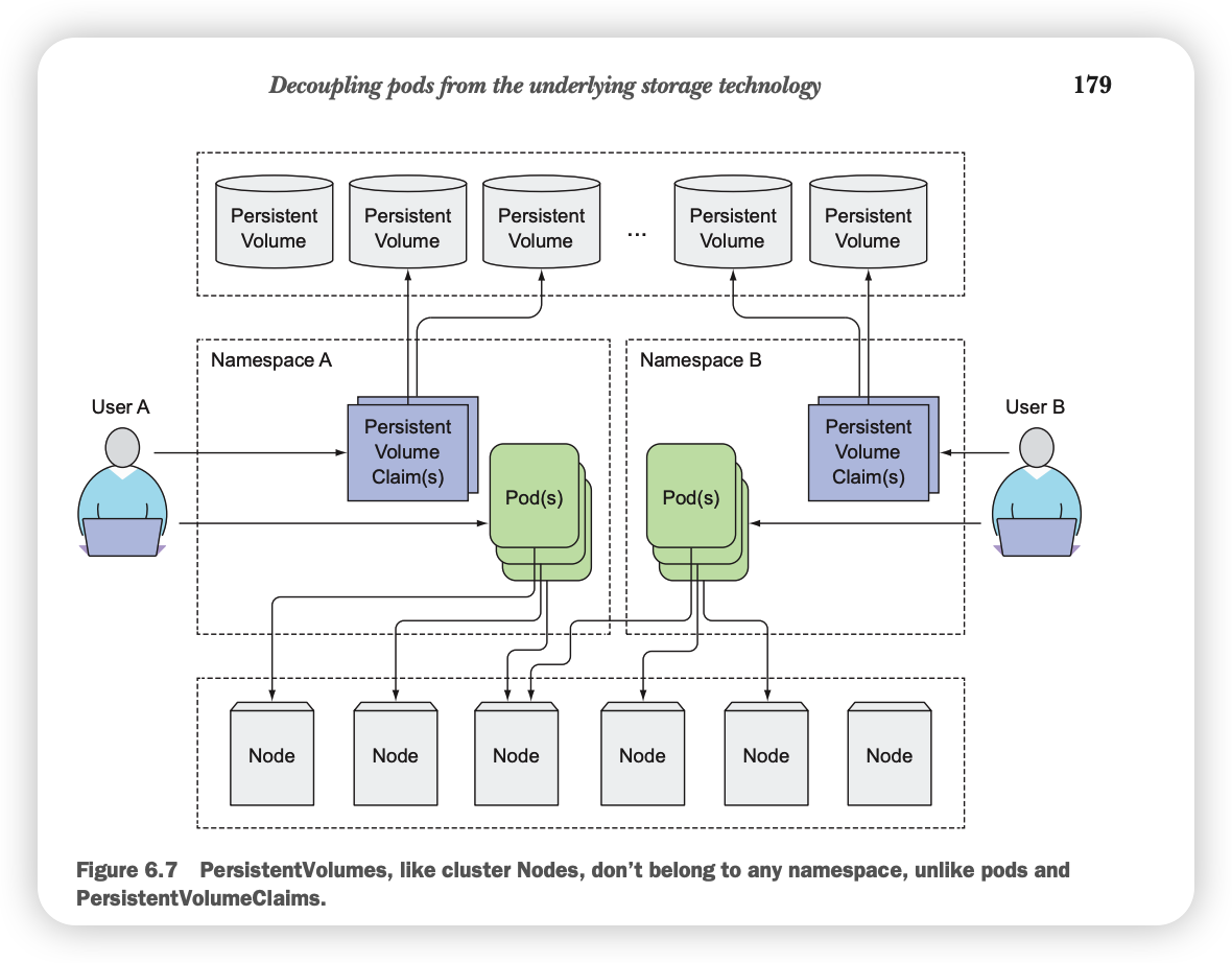 이상적으로 쿠버네티스에 애플리케이션을 배포하는 개발자는 기저에 어떤 종류의 스토리지 기술이 사용되는지 알 필요가 없어야 하고, 동일한 방식으로 파드를 실행하기 위해 어떤 유형의 물리 서버가 사용되는지 알 필요가 없어야 한다. 인프라스트럭처 관련 처리는 클러스터 관리자만의 영역이어야 한다.