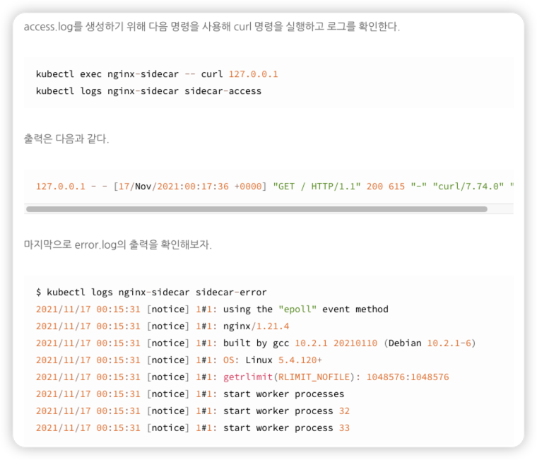 LET ME) 사이드카 컨테이너는 기존 컨테이너의 변경 없이 기능을 확장시키고 향상시킨다. 파드에 컨테이너를 여러 개 배치하는 경우 사이드카 컨테이너는 주로 파드의 파일시스템을 공유하는 형태를 말한다.