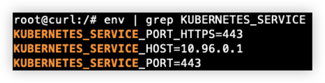 쿠버네티스 API 서버의 IP와 포트를 찾아야 한다. Kubernetes 라는 서비스가 디폴트 네임스페이스에 자동으로 노출되고 API 서버를 가리키도록 구성되기 때문에 쉽다.