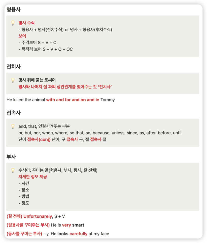 형용사, 전치사, 접속사, 부사에 대해 알아보겠습니다.