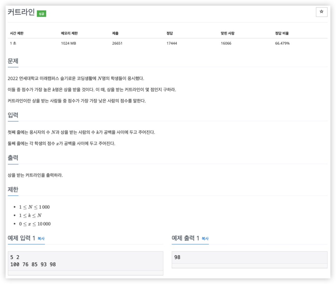 https://www.acmicpc.net/problem/25305