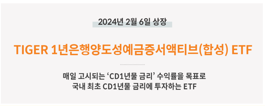 TIGER 1년은행양도성예금증서액티브(합성) 이 출시되었습니다.