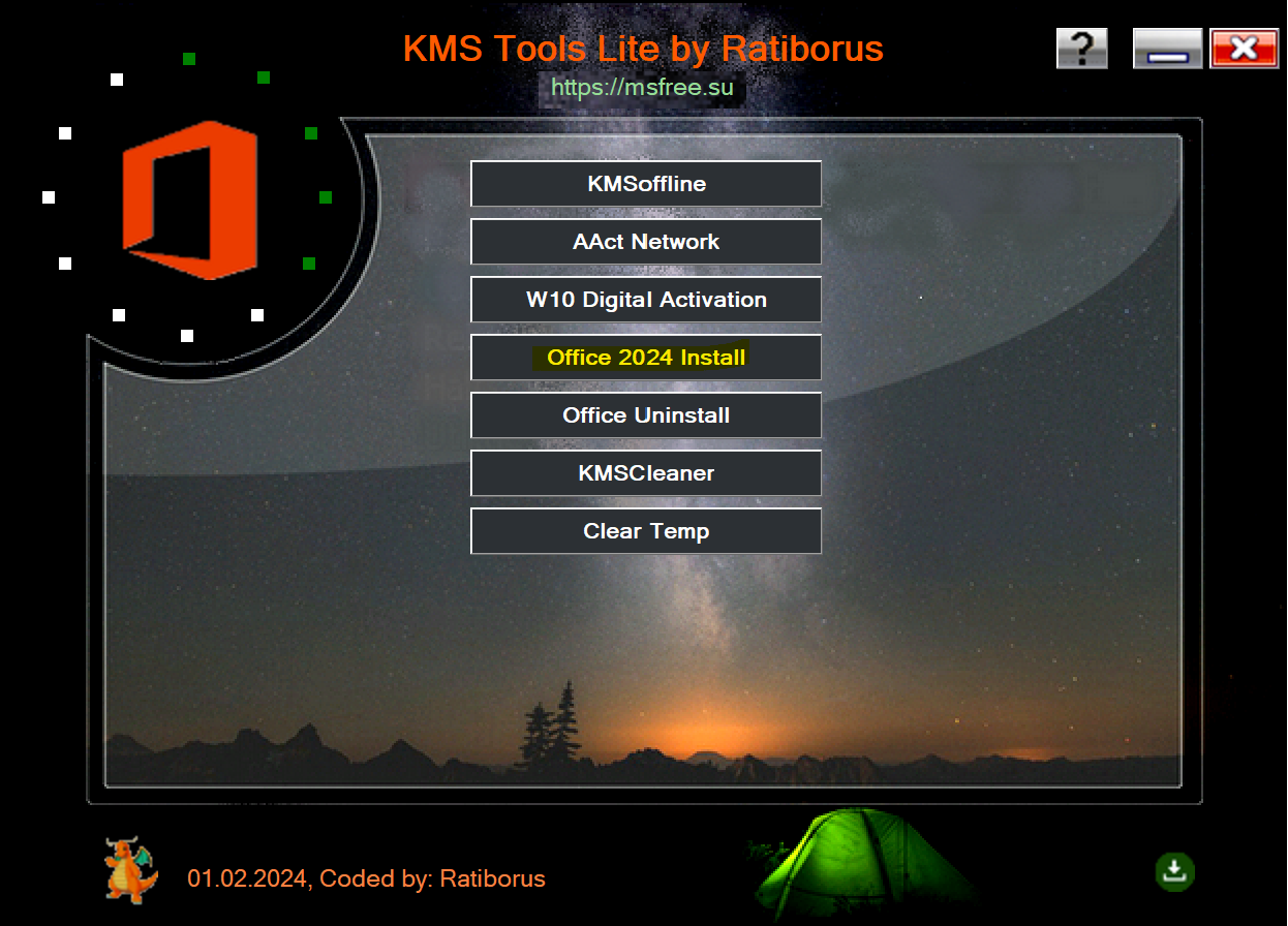그러면 KMS Tools 가 보이게 되고, 'Office 2024 install' 버튼 클릭