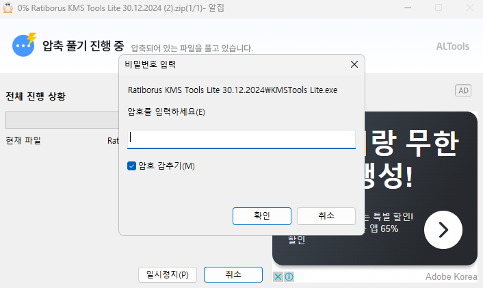해결한 방법은 반디집을 설치하시면 됩니다.
