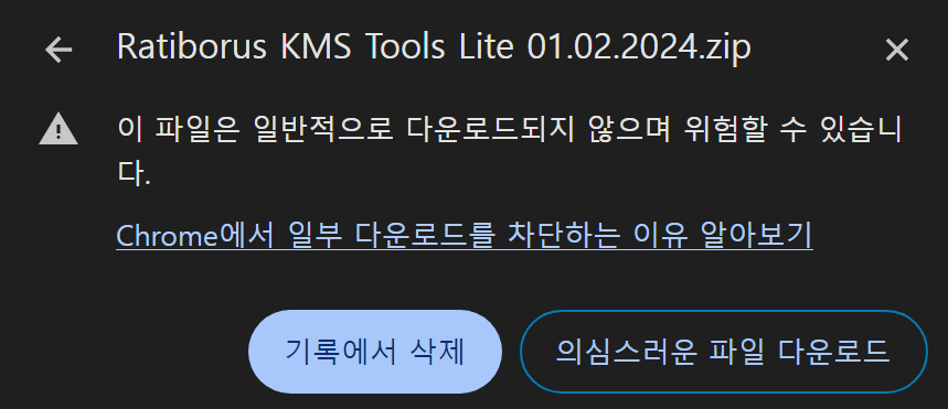 안녕하세요.오늘은 크롬에서 파일을 다운로드 하려고 할 때 아래와 같은 메시지와 함께 다운로드를 못하게 막는 경우가 있습니다.이 경우는 실행 파일이거나 압축파일 등 인가되지 않을 파일이