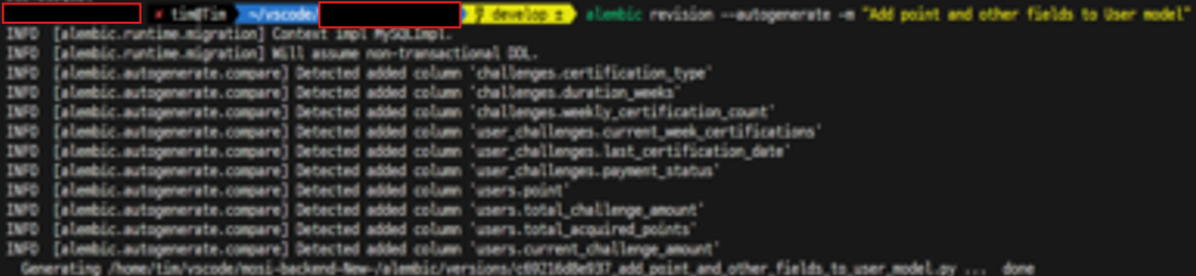 alembic revision --autogenerate -m "User 모델에 point 필드 등 추가"