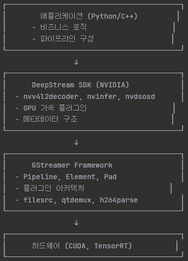 - NVIDIA DeepStream은 Gstreamer 위에 얹어진 확장 계층